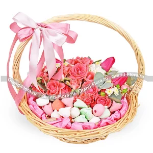 Нежное счастье - букет из желтых и розовых тюльпанов