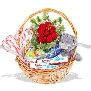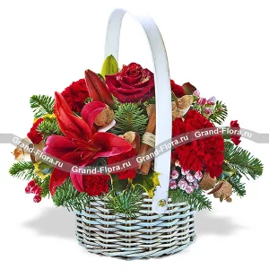 Новогодняя романтика - корзина из роз и новогоднего декора