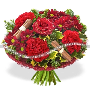 Новогодняя мечта - букет с розами и хризантемами, новогодний декор