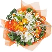 Уменьшенный: роза кустовая оранжевая - 3 шт, альстромерия белая - 4 шт, гипсофила - 2 шт, листья апсидистры загнутые - 2 шт, фетр оранжевый.