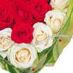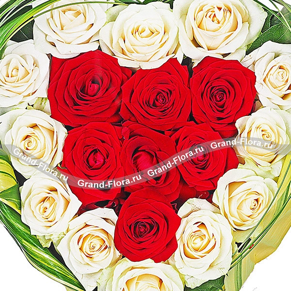 Думаете как при помощи цветов можно удивить девушку? Мы Вам поможем! Прекрасно подойдет данная композиця из белых и красных роз в форме сердца -  олицетворяющая самое прекрасное чувство на свете - любовь.