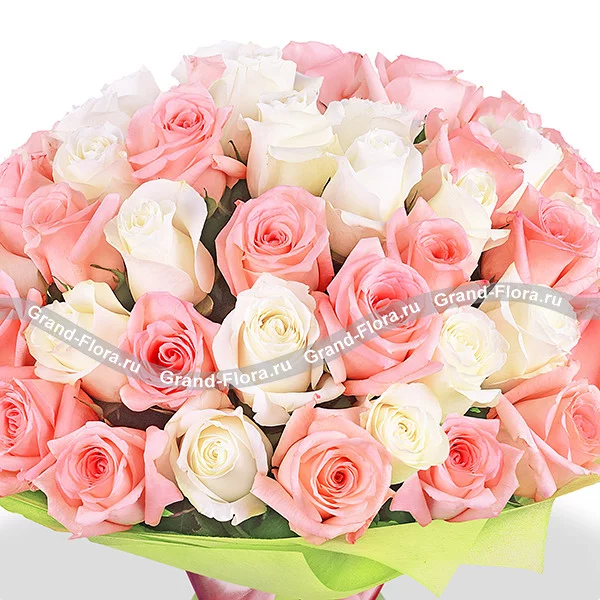 Роза белая (кремовая) и розовая 70 см - 51 шт , упаковка фетр.