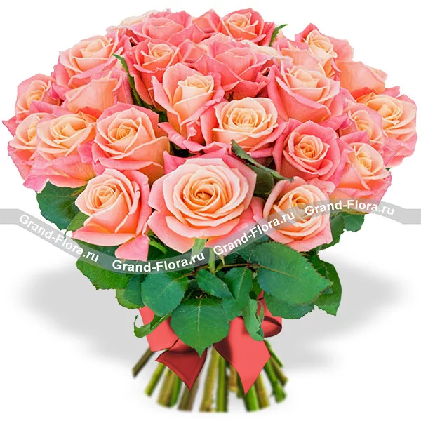 Роза персиковая (Мисс Пигги) 60 см - 25 шт.,  упаковка, лента.