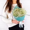 Уменьшенный: гипсофила - 3 шт., упаковка, лента. Примерный размер 20Х20 см.