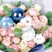 Новогодний букет с нобилисом, ёлочными игрушками, белыми и розовыми розами – это праздничное украшение, которое создаст волшебную атмосферу в вашем доме или станет незабываемым подарком для близких. Этот букет сочетает в себе классические зимние мотивы и современные тенденции флористики, превращаясь в настоящий шедевр.