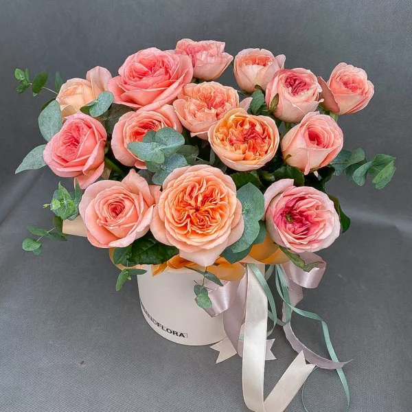 Оттенок, сорт роз и цвет коробки может отличаться от картинки. Уточнить можно у менеджеров нашей компании. Все пожелания клиента будут учтены.